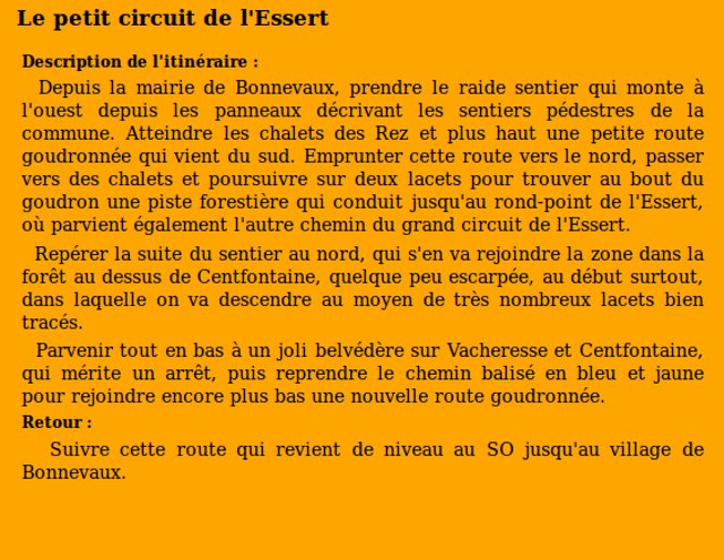 | Chalets rencontrés : Les Rez. | Lieux-dits traversés: Rond point de l'Essert. |