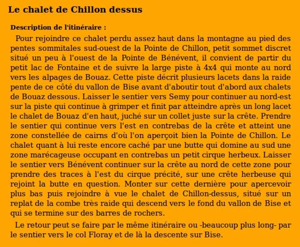 | Photo de l'itinéraire Carte de l'itinéraire | Description de l'itinéraire |