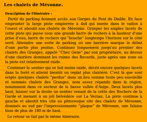 | Chalets rencontrés : Les Granges (Mévonne), Chalets de Mévonne. | Lieux-dits traversés: Le Jotty. |