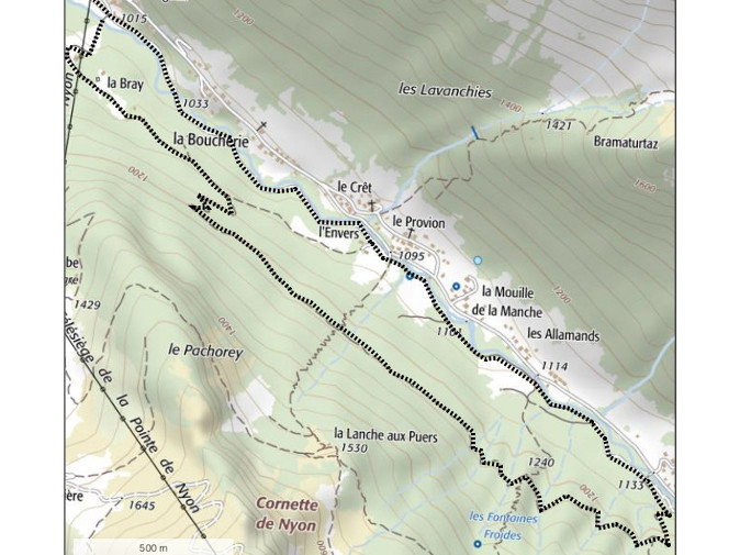 | Chalets rencontrés : La Bray. | Lieux-dits traversés: le Chargeau, L'Envers, Le Provion, Les Allamands, Bout Chavaly. |