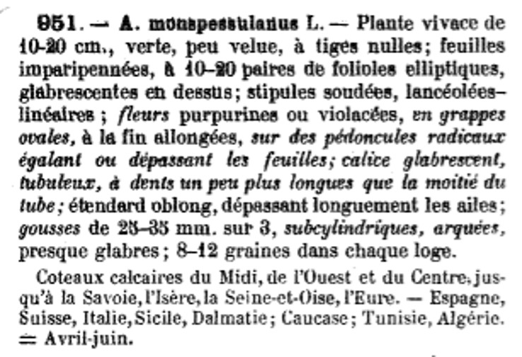 | Astragale de Montpellier | Nom latin : Astragalus monspessulanus (Coste) idem (actuel) |