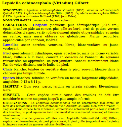 | Amanite épineuse | Nom latin (Maublanc ou antérieur) : Lepidella echinocephala Nom latin actuel : Amanita echinocephala |