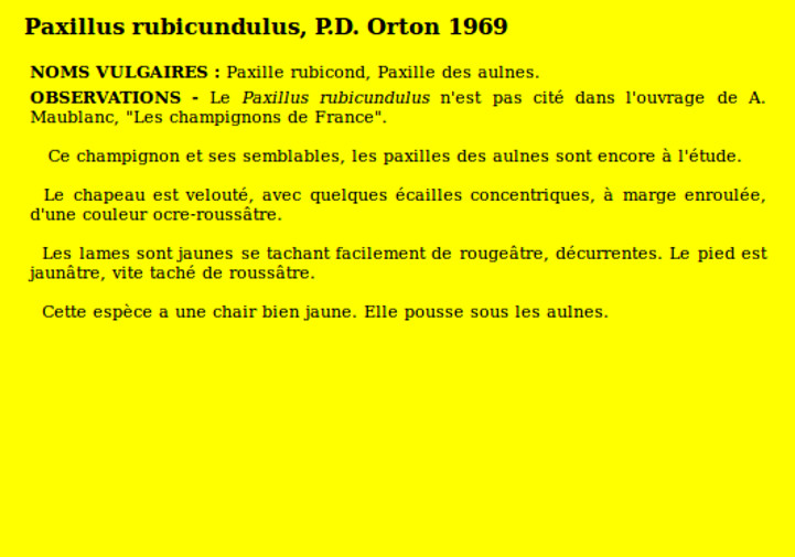 | Paxille rubicond | Nom latin (Maublanc ou antérieur) : Paxillus rubicundulus Nom latin actuel : Paxillus rubicundulus |