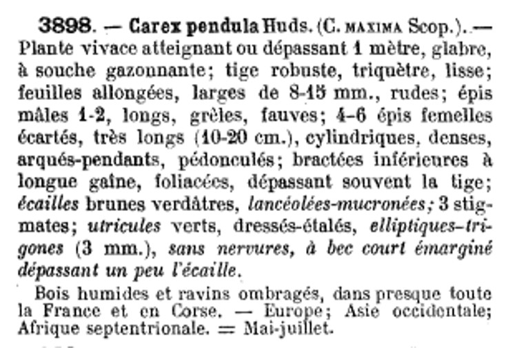 | Laiche à épis pendants | Nom latin : Carex pendula (Coste) idem (actuel) |