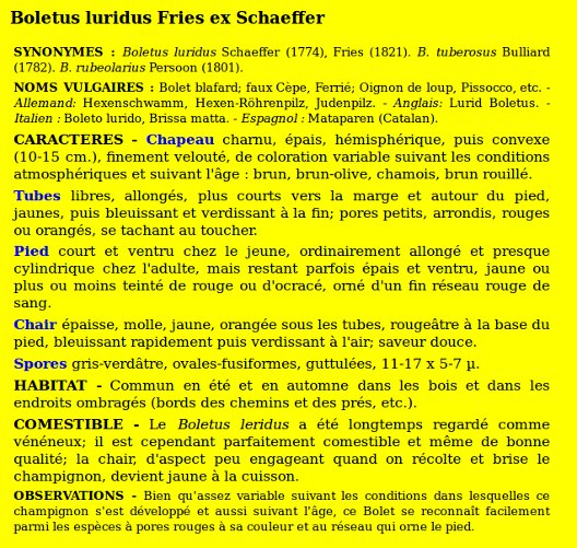 | Bolet blafard | Nom latin (Maublanc ou antérieur) : Boletus luridus Nom latin actuel : Boletus luridus |