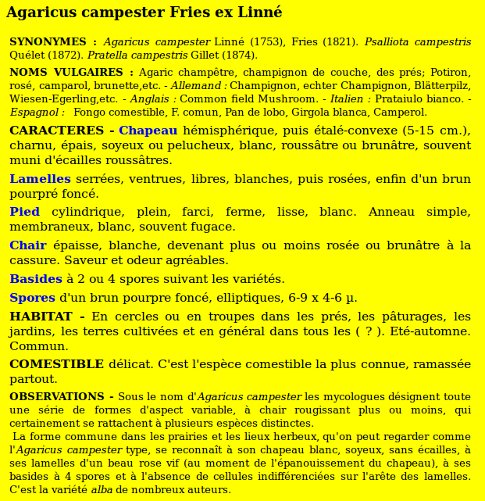 | Agaric champêtre | Nom latin (Maublanc ou antérieur) : Agaricus campester Nom latin actuel : Agaricus campestris |