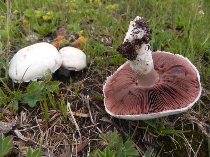 | Famille des Agaricacées | Pied blanc, anneau souvent fugace.  Chapeau blanc, soyeux ou pelucheux.  Lamelles d'abord blanches puis rosées, enfin brun-chocolat.  Chair blanche rosissant ou brunissant à la cassure  |