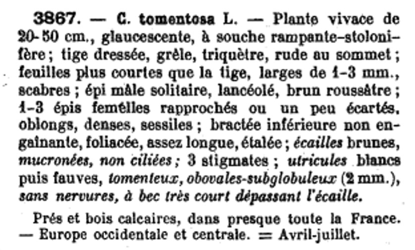 | Laiche à utricules tomenteux | Nom latin : Carex tomentosa (Coste) idem (actuel) |