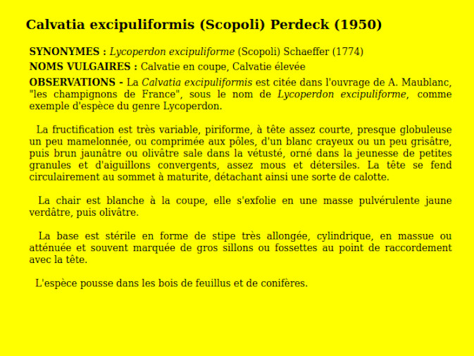 | Calvatie en coupe | Nom latin (Maublanc ou antérieur) : Lycoperdon excipuliforme Nom latin actuel : Calvatia excipuliformis |