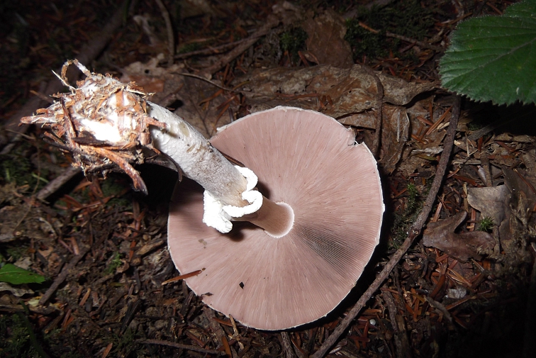 | Famille des Agaricacées | Pied bulbeux, blanc. Anneau double, fugace.  Chapeau globuleux, puis plan, blanc teinté de citrin.  Lamelles blanches, puis gris-roses, enfin brun-pourpre.  Chair blanche. Odeur anisée.  |