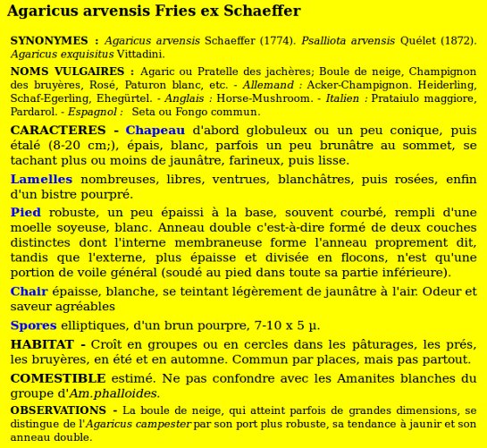 | Agaric des jachères ? | Nom latin (Maublanc ou antérieur) : Agaricus cf. arvensis Nom latin actuel : Agaricus cf. arvensis |