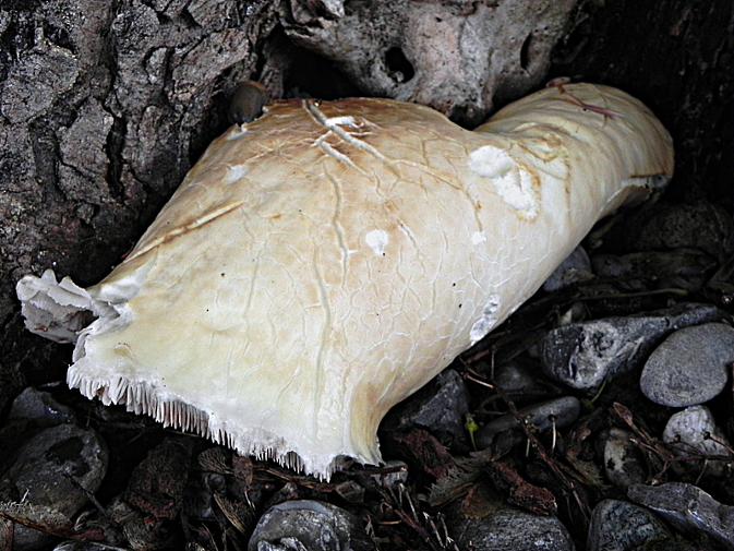 | Famille des Bolbitiacées | Pied blanc, muni d'un anneau blanc persistant.  Chapeau blanc ocracé pâle, plus foncé au milieu.  Lamelles serrées, blanches puis brun-bistre.  Pousse normalement en touffes sur les souches  |