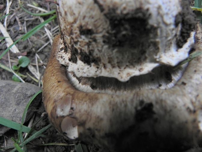| Famille des Tricholomatacées | Pied très robuste avec un double anneau.  Chapeau massif ocre jaune à brun. Marge très enroulée.  Lamelles blanc-crème serrées et décurrentes.  Chair très coriace. Pousse en montagne.  |