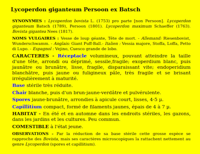 | Vesse de loup géante | Nom latin (Maublanc ou antérieur) : Lycoperdon giganteum Nom latin actuel : Calvatia gigantea |