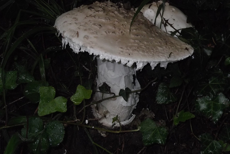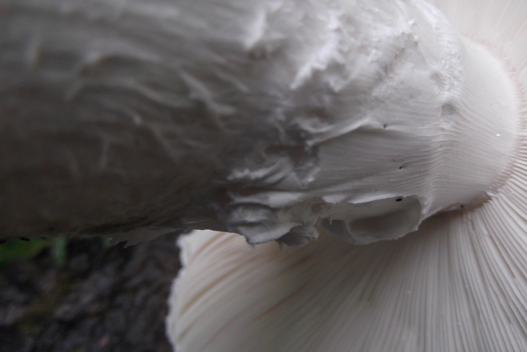| Famille des Amanitacées | Pied bulbeux avec anneau crémeux.  Chapeau blanc couvert de verrues, floconneux au bord.  Lamelles blanches, serrées.  Chair tendre et blanche.  |