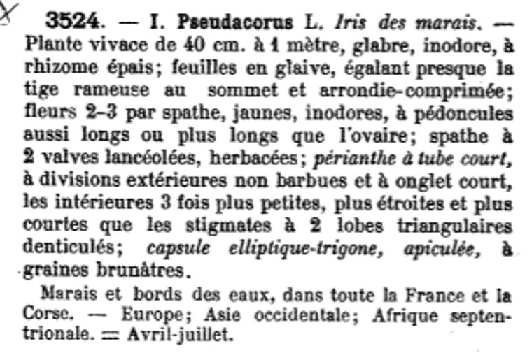 | Iris jaune | Nom latin : Iris pseudacorus (Coste) idem (actuel) |