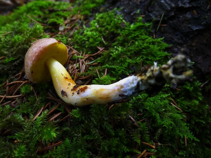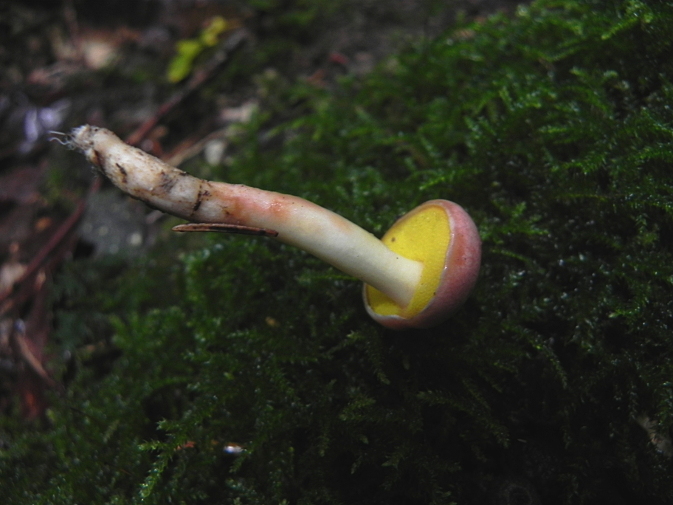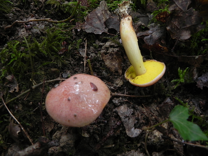 | Famille des Bolétacées | Chapeau brun-rouge ou rose carné  Pores jaune éclatant, assez longs  Pied blanc-jaunâtre, souvent sinueux, ferme  Pousse sous les feuillus  |