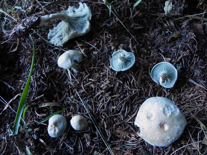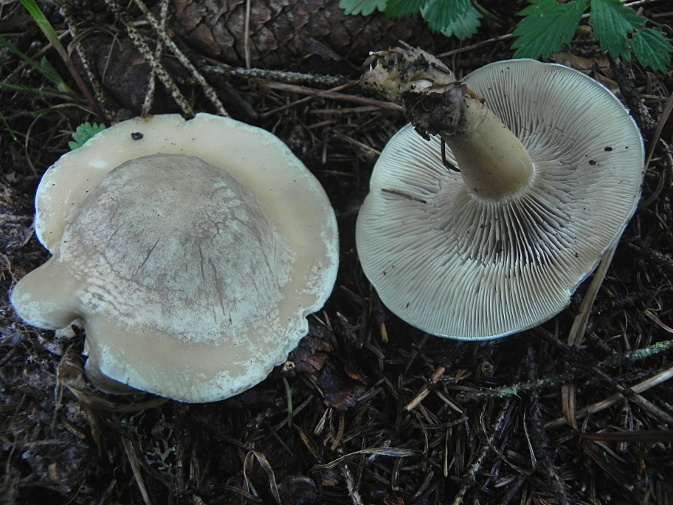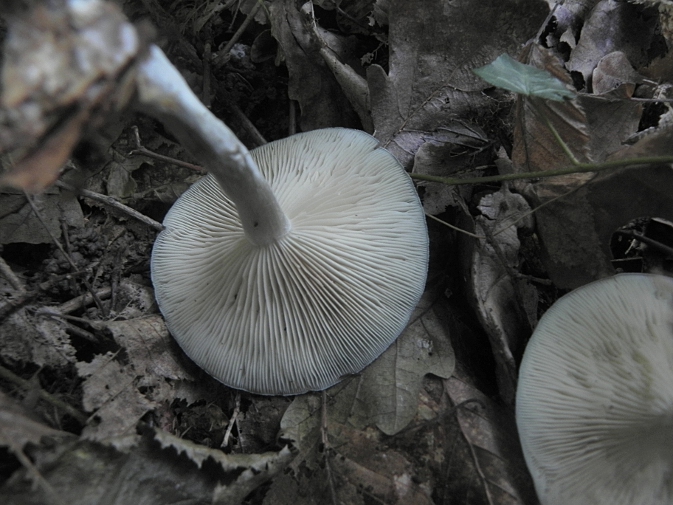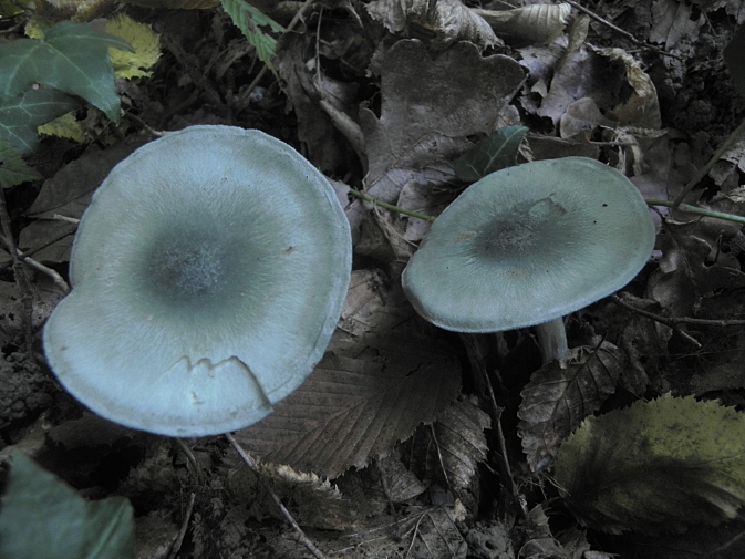 | Famille des Agaricacées | Pied élastique, blanc ou vert-glauque.  Chapeau vert glauque, ondulé au bord.  Lamelles blanchâtres, serrées.  Odeur forte d'anis.  |