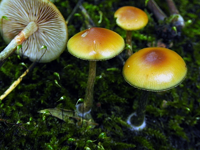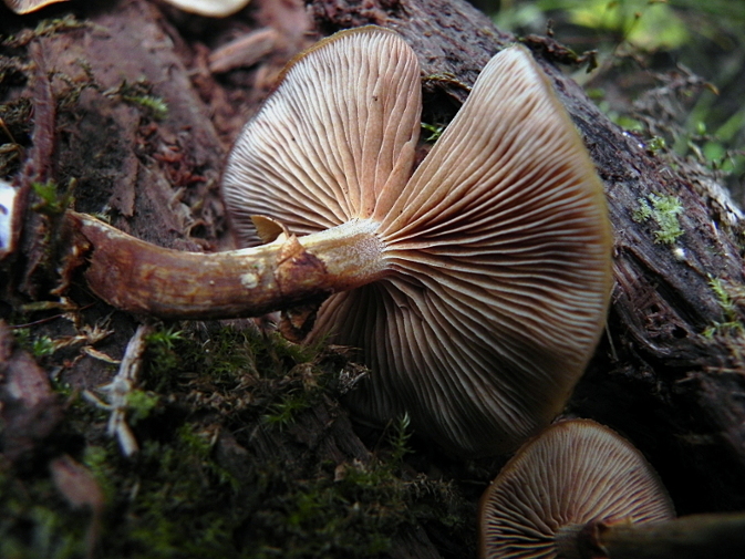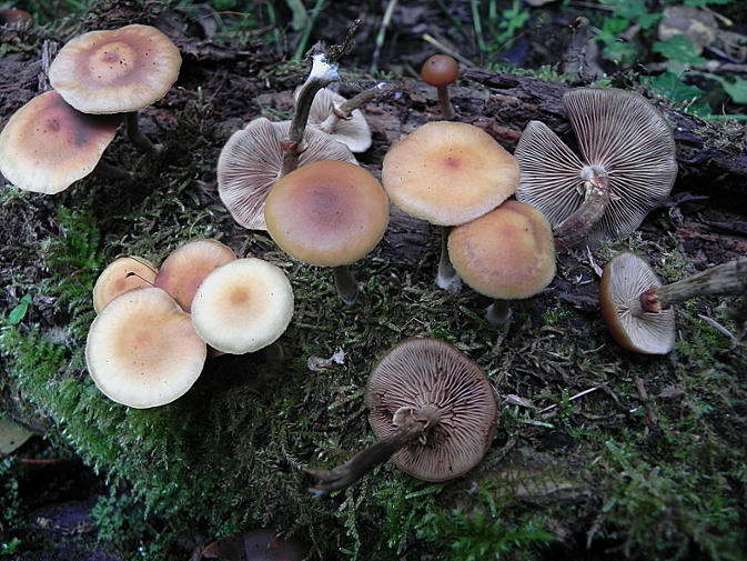 | Famille des Pholiotées | Chapeau brun-fauve, plus clair au centre, la marge dépassant les lames  Lames serrées, ocre-roux  Pied concolore, plus foncé en bas, strié de fibrilles blanches sous un anneau net  Pousse sur bois, surtout conifères  |