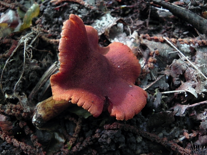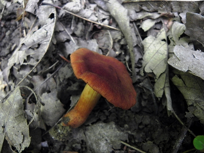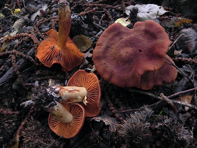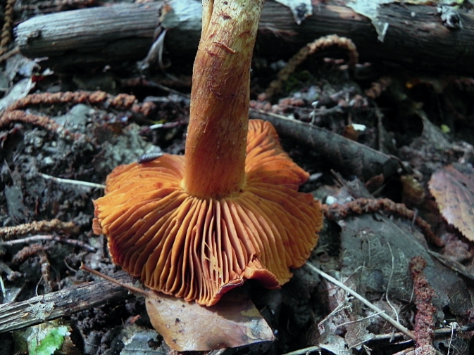 | Famille des Cortinariacées | Pied jaune-orangé, plus clair en haut.  Chapeau roux-orangé, soyeux-fibrilleux.  Lamelles inégales et espacées, d'un bel orangé rouille  Odeur de radis.  |