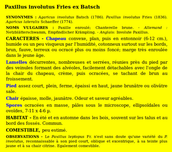 | Paxille enroulé | Nom latin (Maublanc ou antérieur) : Paxillus involutus Nom latin actuel : Paxillus involutus |