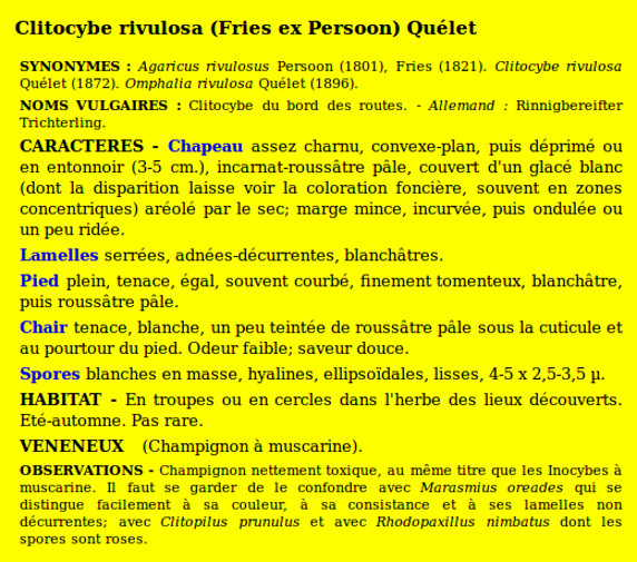 | Clitocybe blanchi | Nom latin (Maublanc ou antérieur) : Clitocybe rivulosa Nom latin actuel : Clitocybe dealbata |