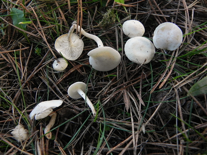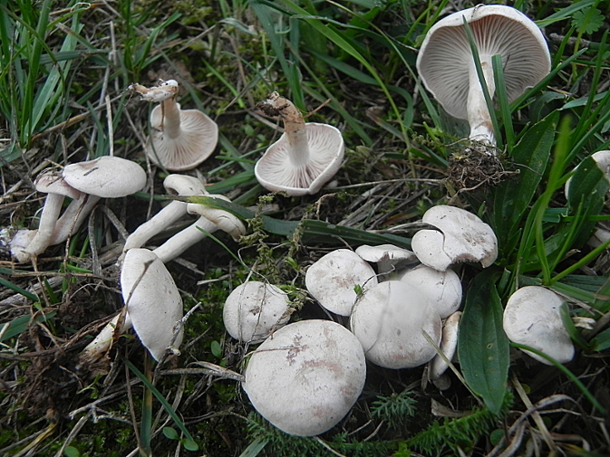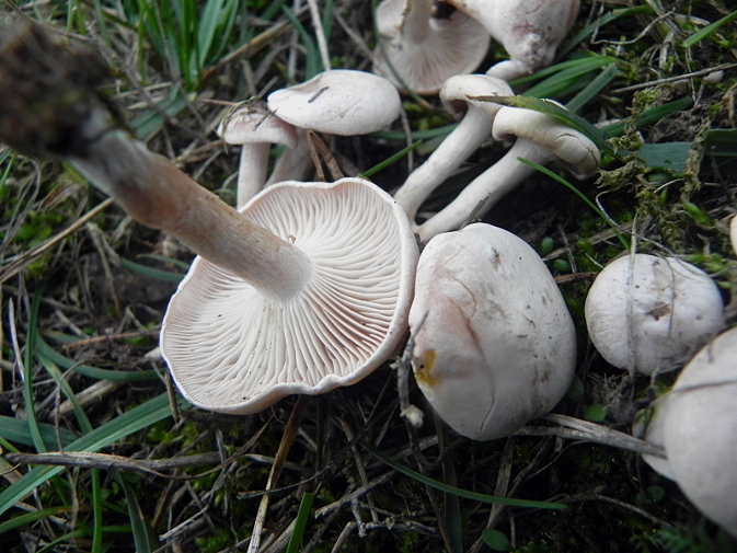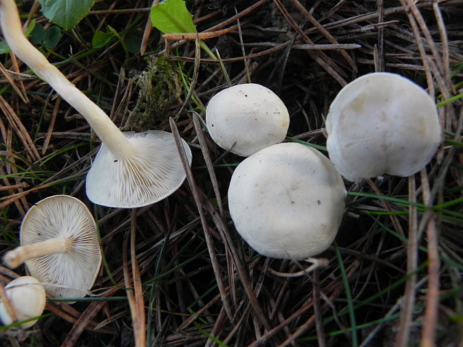 | Famille des Tricholomatacées | Chapeau blanc, , couvert par un givre blanc ou une pruine laissant voir des marbrures ocre-ose  Lames assez serrées, blanches, peu décurrentes  Pied blanc. Odeur faible, légèrement farineuse  Pousse dans l'herbe des pelouses et des prairies  |