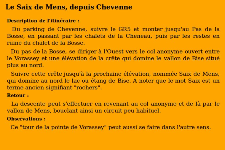 | Sommet(s) franchi(s) : Saix de Mens. | Col(s) franchi(s) : Pas de la Bosse. |