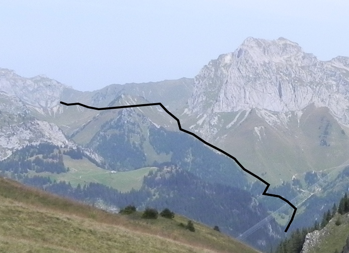 | Chalets rencontrés : Chalet de la Bosse (ruines), Chalets de la Cheneau, Chalet de la Combe au Trot, Chalets de Mens. | Lieux-dits traversés: Le Plan des Ouêtres. |