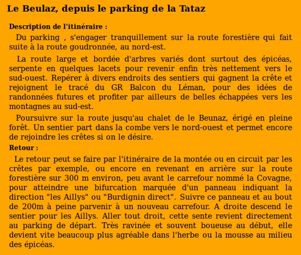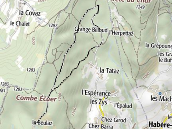 | Chalets rencontrés : Chalet le Beulaz. | Lieux-dits traversés: Parking de la Tataz, La Covagne. |