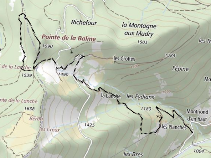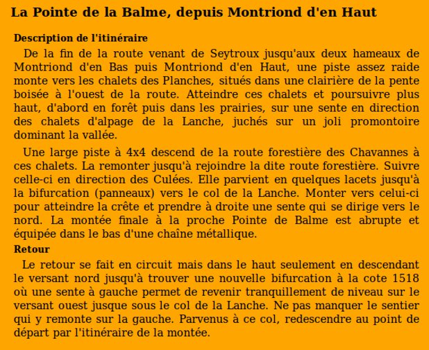 | Sommet(s) franchi(s) : Pointe de la Balme. | Col(s) franchi(s) : Col de la Lanche. |