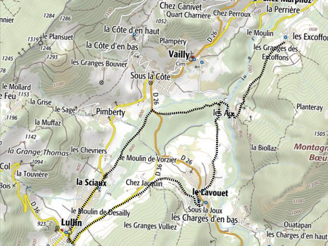 | Point de départ: Lullin, vallée du Brevon, route de Vailly à Terramont  | |