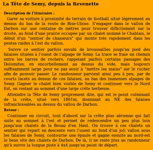 | Sommet(s) franchi(s) : Falaises du Bouaz, Tête de Semy. | Col(s) franchi(s) : Aucun. |