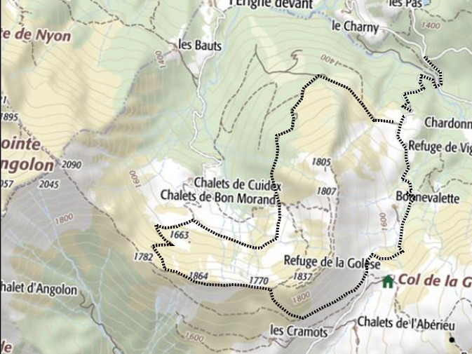| Chalets rencontrés : Chalet de Bonnevalette, Chalet de Bon Morand, Chalet de Vigny. | Lieux-dits traversés: Aucun. |