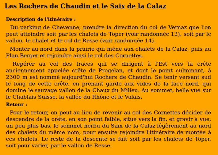 | Sommet(s) franchi(s) : Rochers de Chaudin, Saix de la Calaz. | Col(s) franchi(s) : Col des Cornettes, Col de Vernaz. |