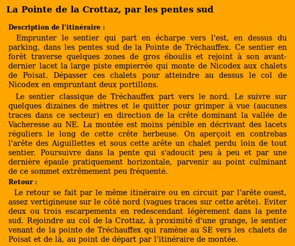| Sommet(s) franchi(s) : Pointe de la Crottaz. | Col(s) franchi(s) : Col de la Crottaz, Col de Nicodex. |
