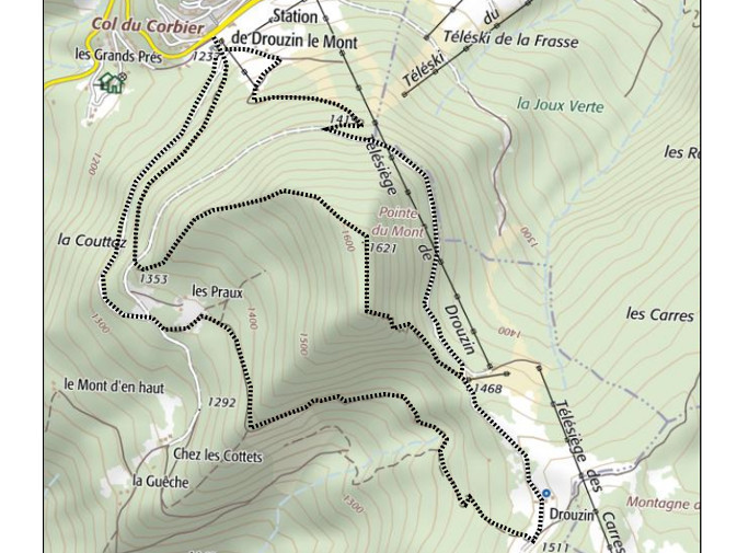 | Chalets rencontrés : Chalets de Drouzin, Les Praux. | Lieux-dits traversés: Aucun. |