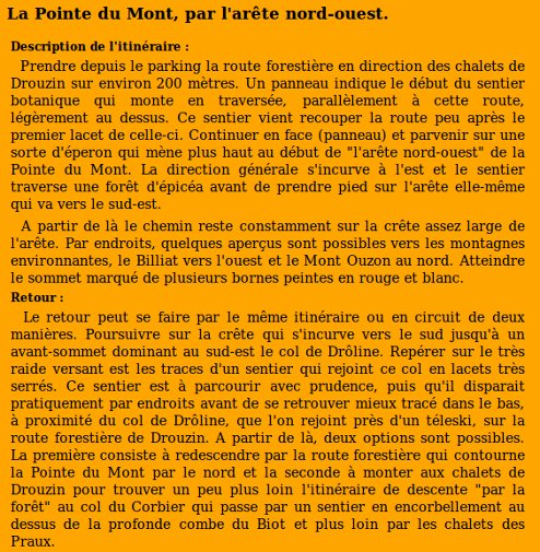 | Sommet(s) franchi(s) : Pointe du Mont. | Col(s) franchi(s) : Col de Drôline. |