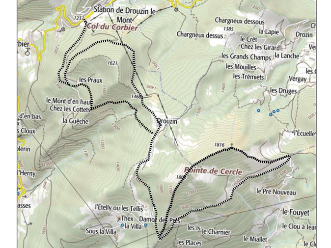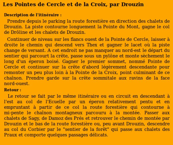 | Sommet(s) franchi(s) : Pointe de la Croix, Pointe de Cercle. | Col(s) franchi(s) : Col de Drôline, Col de l'Ecuelle. |