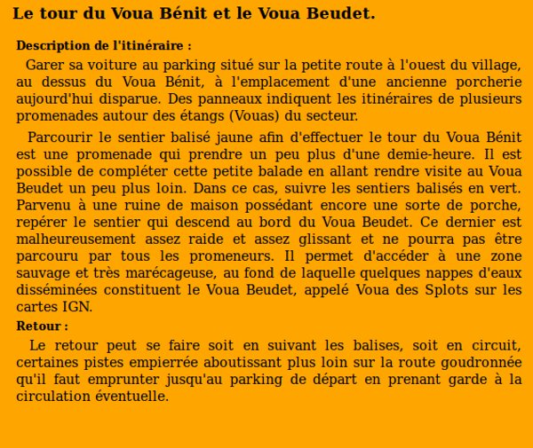| Photo de l'itinéraire Carte de l'itinéraire | Description de l'itinéraire |