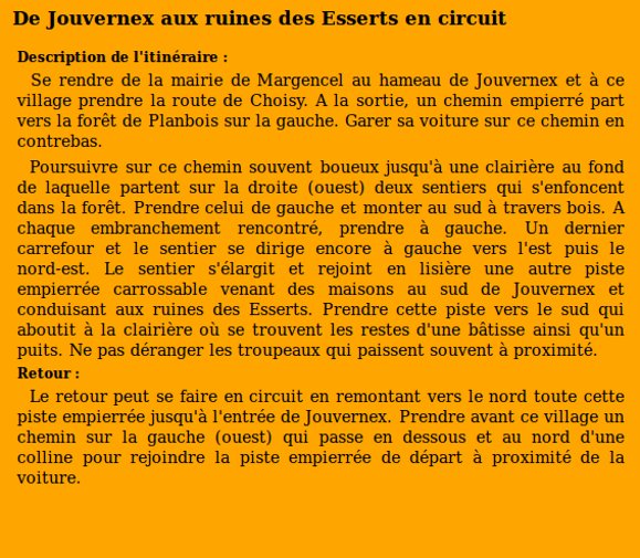| Photo de l'itinéraire Carte de l'itinéraire | Description de l'itinéraire |