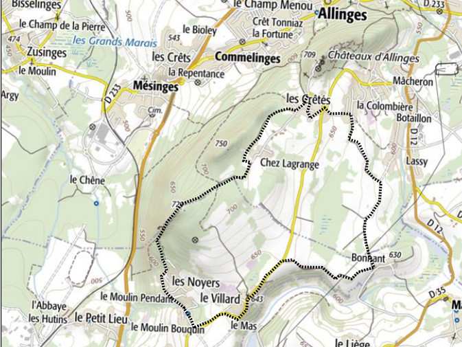 | Point de départ: parking des chateaux d'Allinges, sommet nord de la colline d'Allinges ou Perrignier | |
