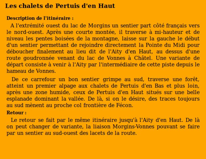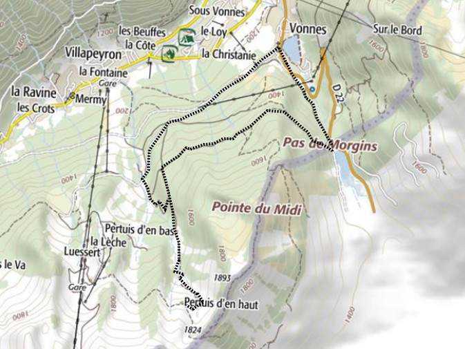 | Chalets rencontrés : Chalets de Pertuis d'en Bas, Chalets de Pertuis d'en Haut. | Lieux-dits traversés: L'Aity d'en Haut. |