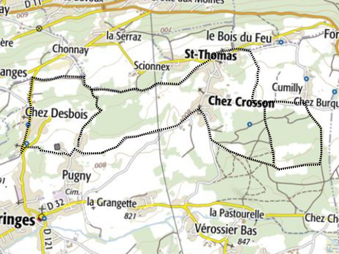| Chalets rencontrés : Aucun. | Lieux-dits traversés: Château de Larringes, Chez Crosson, Saint-Thomas. |