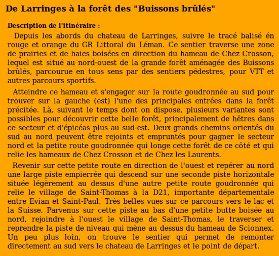 | Photo de l'itinéraire Carte de l'itinéraire | Description de l'itinéraire |