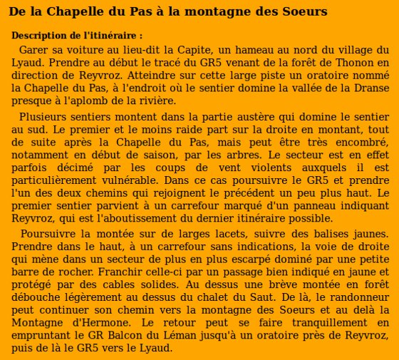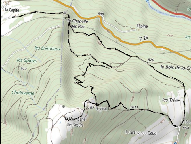 | Chalets rencontrés : Le Saut, chalet des Soeurs. | Lieux-dits traversés: la Capite, la Chapelle du Pas, Reyvroz. |