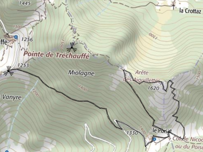 | Chalets rencontrés : chalet des Aiguillettes. | Lieux-dits traversés: parking de Tréchauffex. |