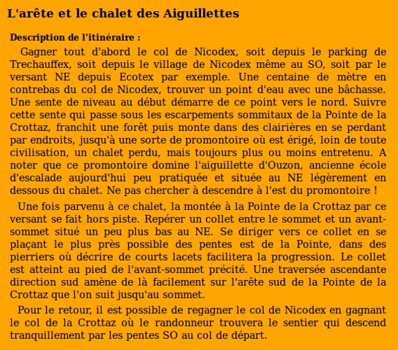 | Sommet(s) franchi(s) : Pointe de la Crottaz. | Col(s) franchi(s) : Col de la Crottaz, Col de Nicodex. |