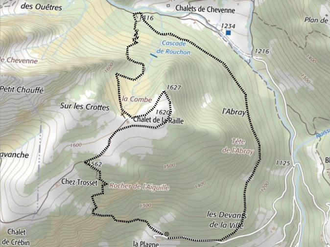 | Chalets rencontrés : Chalet de la Raille. | Lieux-dits traversés: Hameau de la Plagne . |