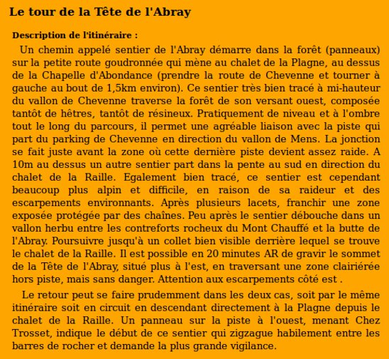 | Sommet(s) franchi(s) : Tête de l'Abray. | Col(s) franchi(s) : Aucun. |